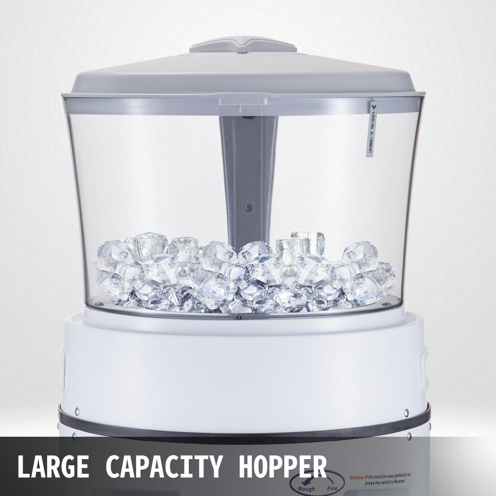 2.[17.6 LBS CAPACITY HOPPER WITH COVER]- Compared with other competitors, our ice shaver machine electric comes with an additional 17.6 lbs (8 kg) ice storage hopper. The large hopper minimizes the number of refills while optimizing the ice supply. It features a PC material cover on the top, which is effective against dust.