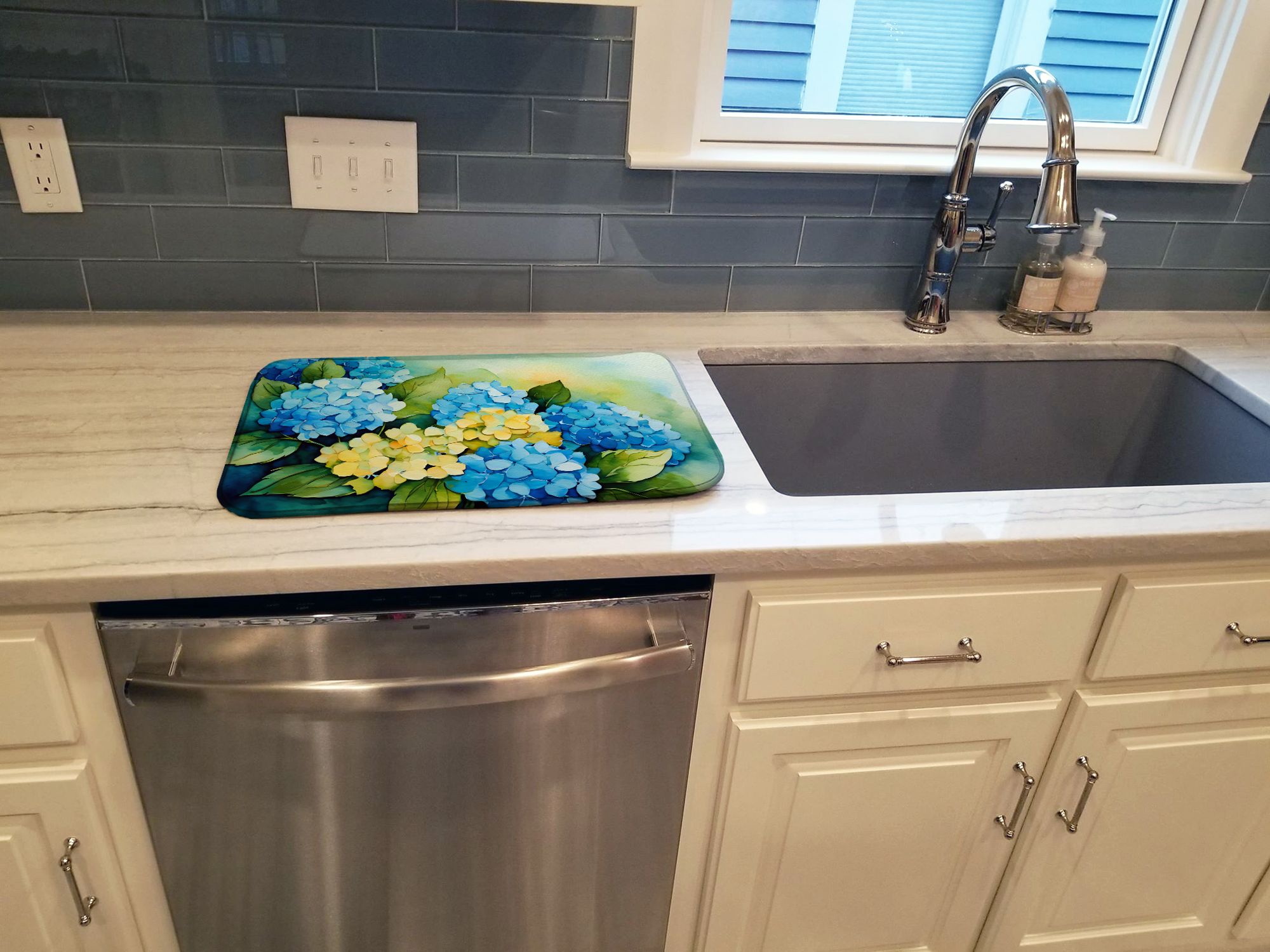 Hydrangeas in Watercolor Dish Drying Mat Absorbent Dish Drying Mat Pad for Kitchen Counter Dish Drainer Mat for Countertop, 14 x 21", Multicolor