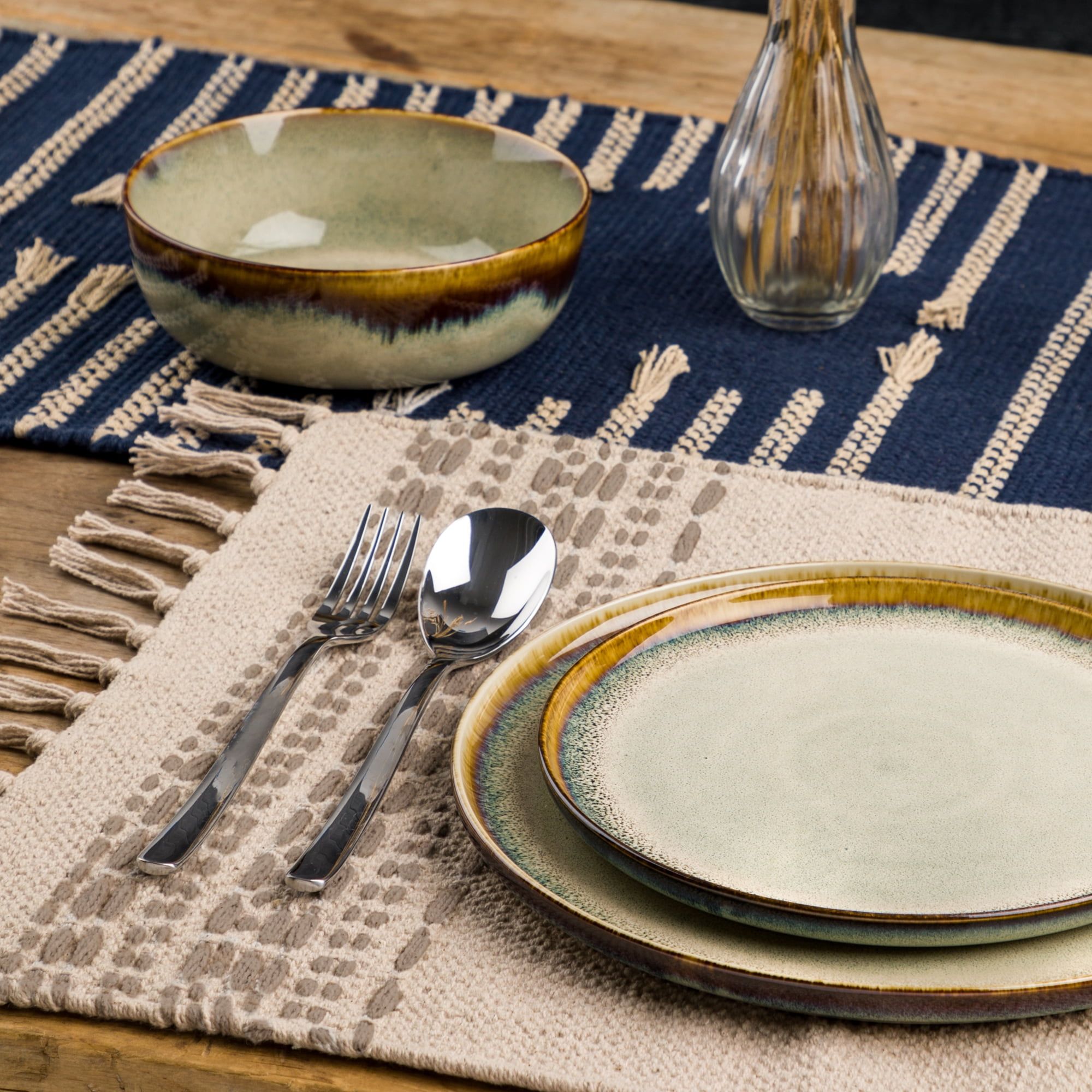 Add a rustic yet refined touch to your dining area with this 2-pack of rectangular grey placemats. Designed to enhance your table décor while protecting surfaces, these placemats are perfect for both everyday meals and special occasions. Inspired by natural and rustic themes, the neutral grey tone complements a wide range of kitchen and dining room styles. Crafted from durable materials for long-lasting use, they help define place settings while adding a functional and decorative layer to your table. Easy to care for—just spot clean as needed.