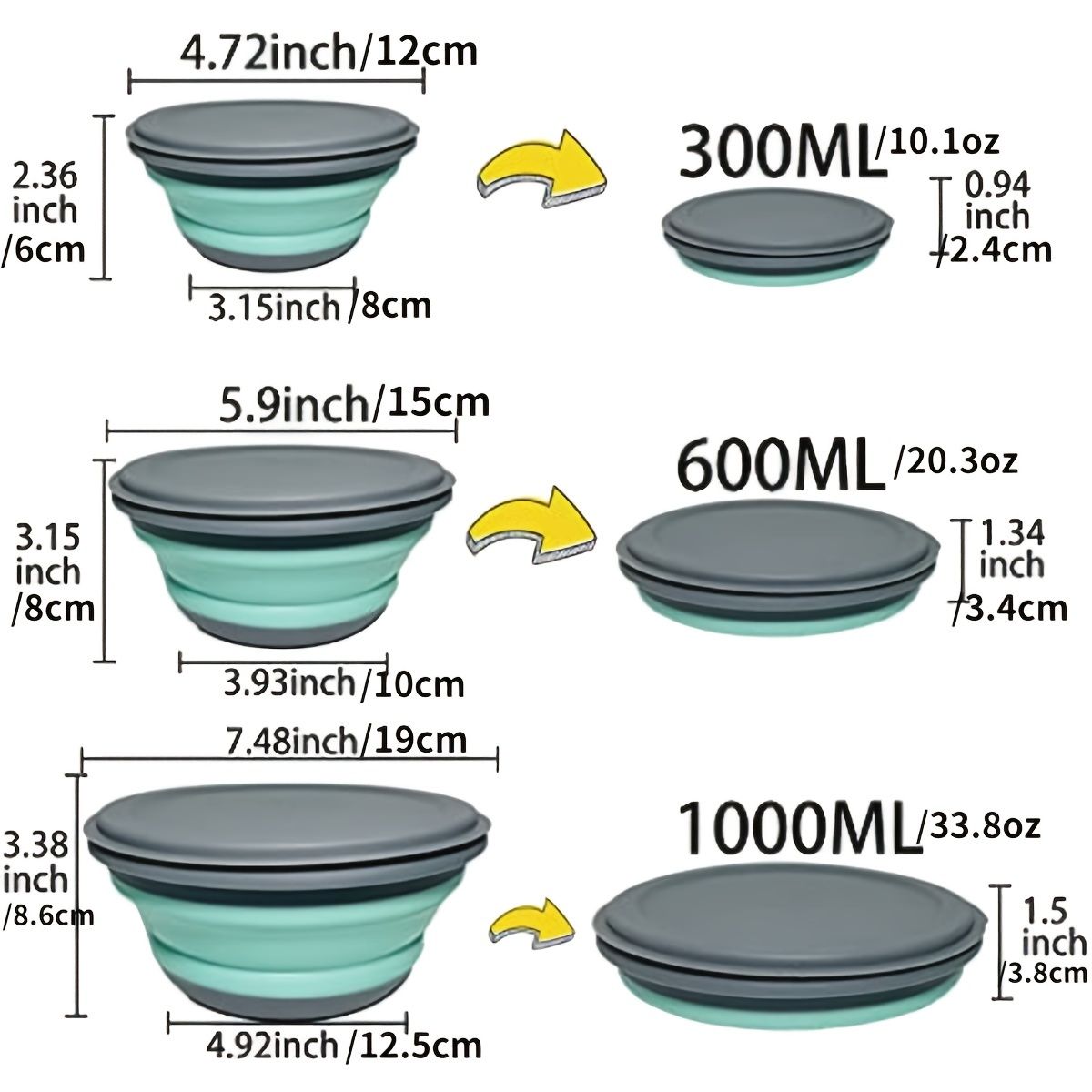 [What You Get ]A Set Of 3 Collapsible Silicone Camp Bowl With Lid; 1 Pcs Carry Bag And A Set Of 3 Pcs Foldable Tableware(1*fork; 1*spoon; 1*chopsticks).Ideal For Preparing Or Storing Food.