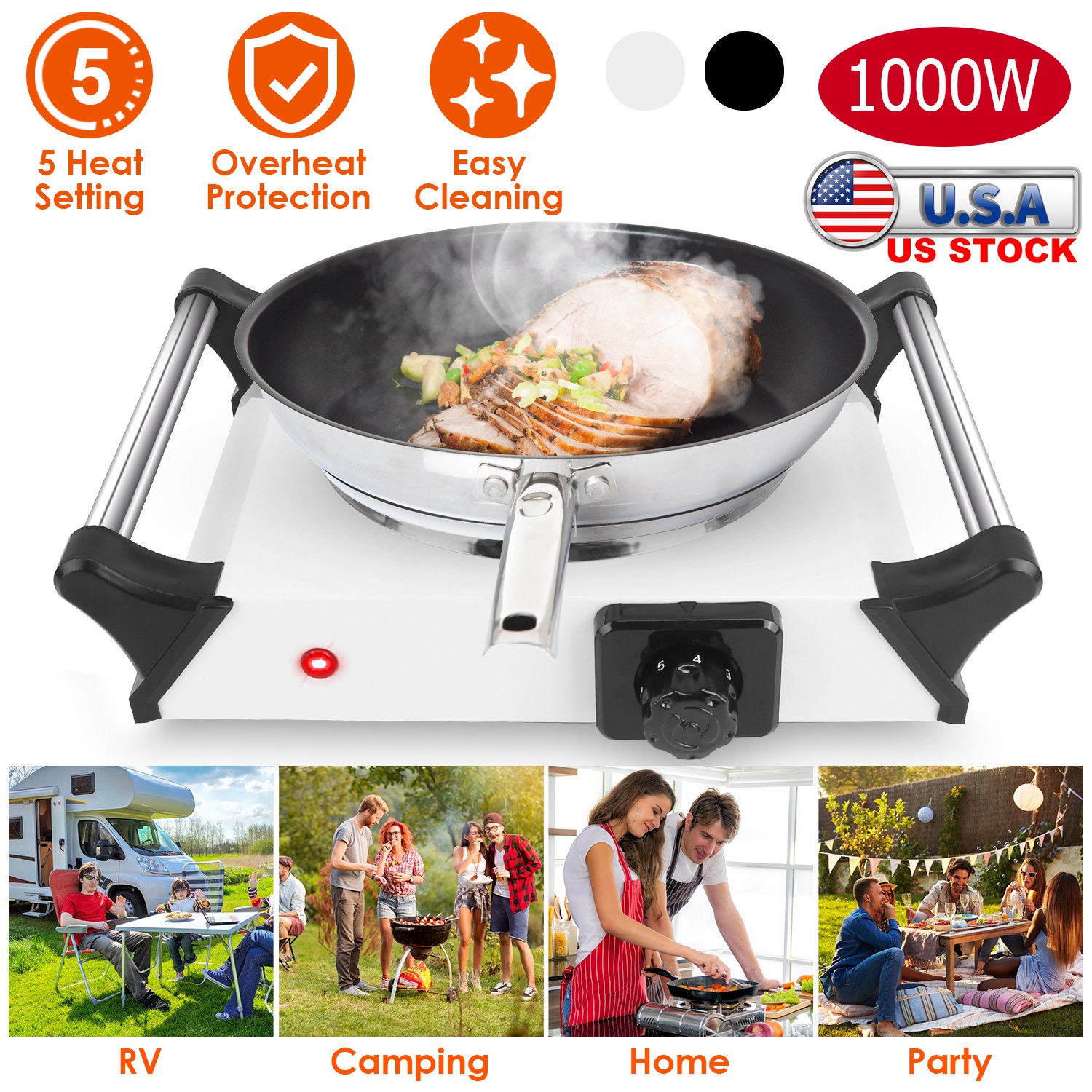 Home > 1000W Electric Single Burner Portable Coil Heating Hot Plate Stove Countertop RV Hotplate with 5 Temperature Adjustments Portable Handles