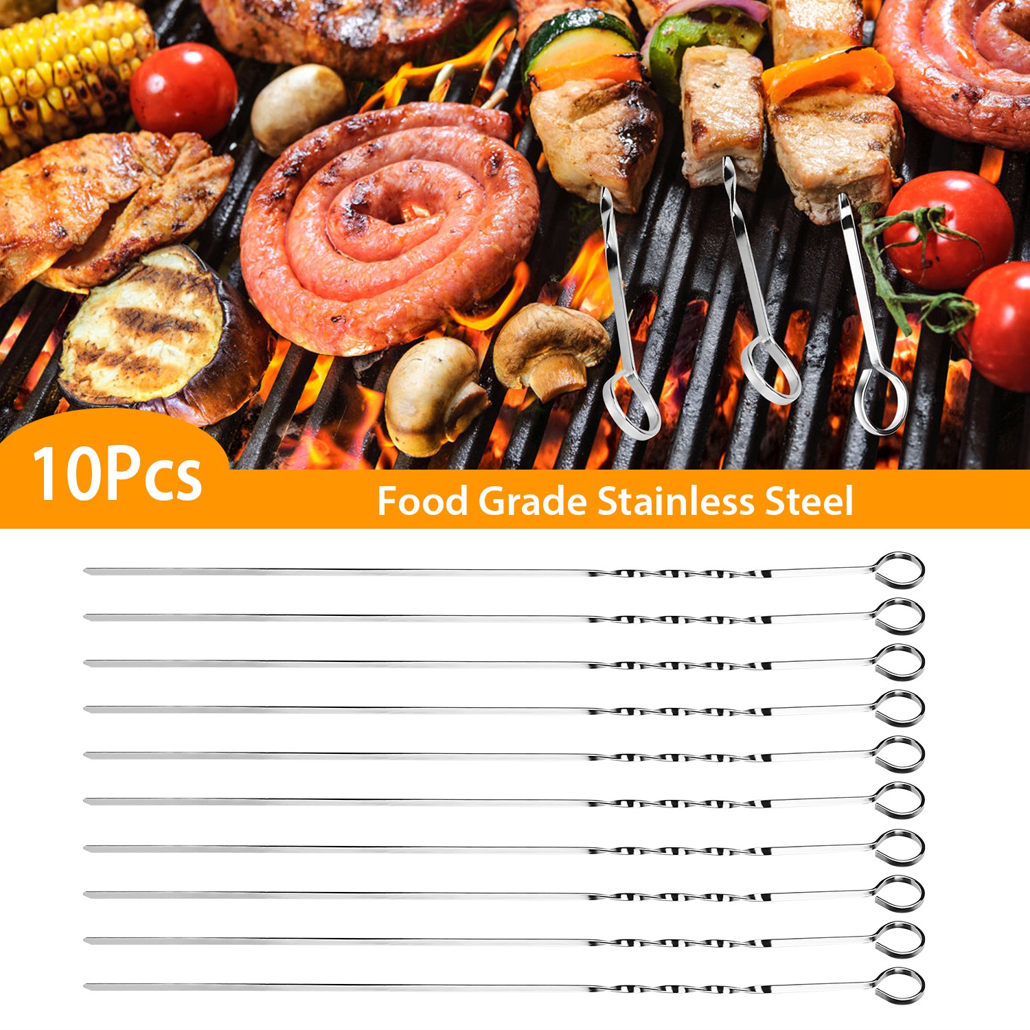 Home > 10Pcs BBQ Skewers 16" inch Kabob Skewers V-Shape Stainless Steel Shish Kebab Sticks Reusable Barbecue Skewers Set BBQ Grill Skewers for Meat Shrimp Ch