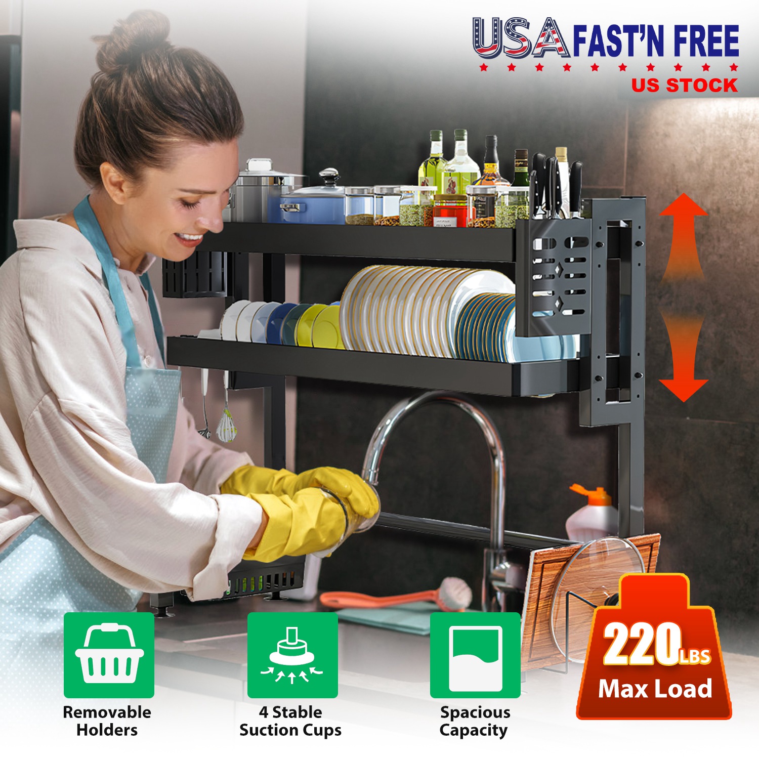 Home > 2-Tier Over the Sink Dish Drying Rack Drainer Utensil Organizer Holder Tableware Organizer Dish Drying Rack for Kitchen Countertop Carbon Steel