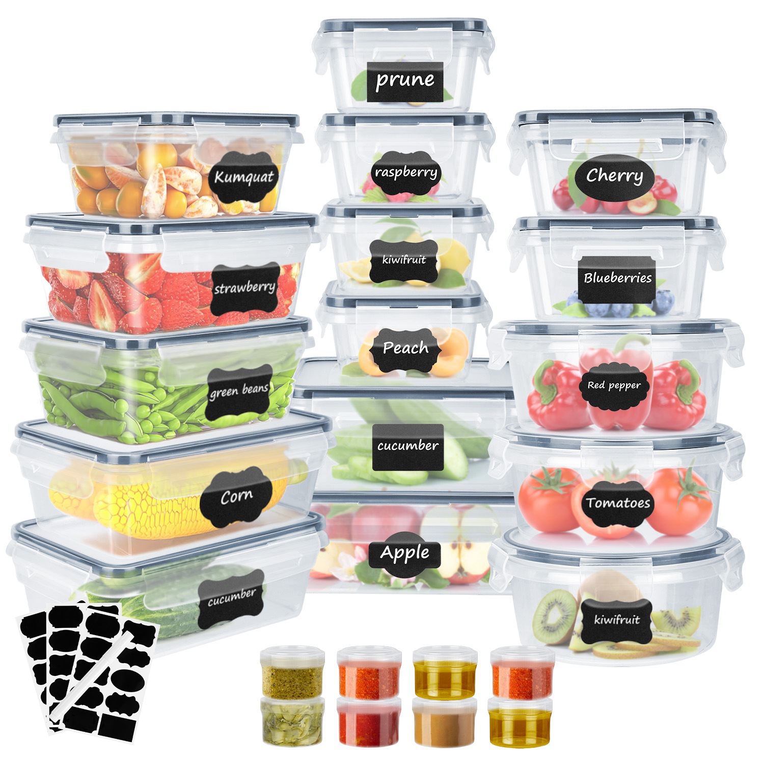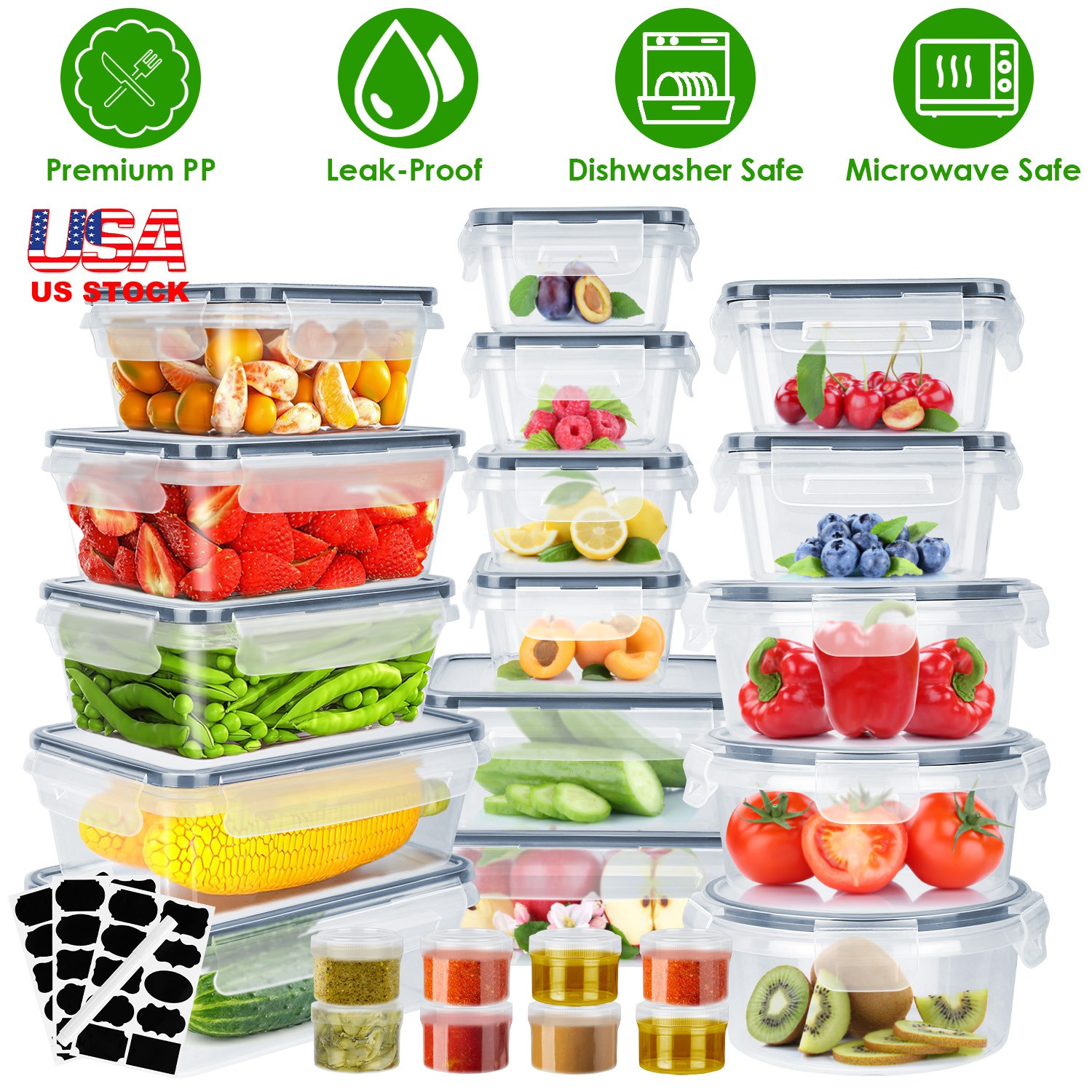 Home > 44Pieces Plastic Food Storage Containers with Lids Airtight Leak-Proof Reusable Meal Prep Containers Lunch Container With Labels Marker for Kitchen St