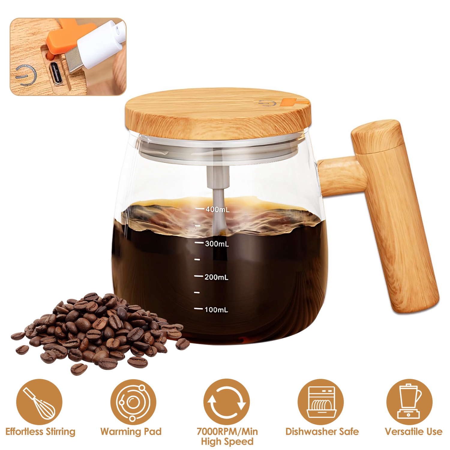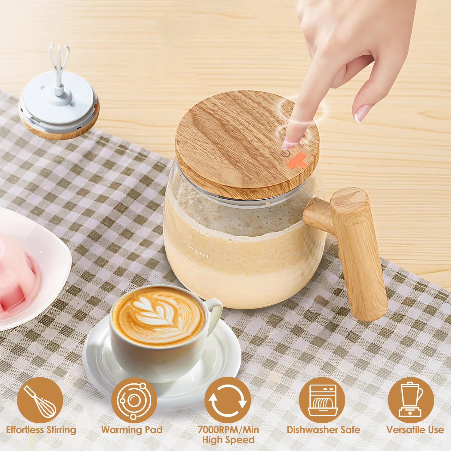 Are you tired of struggling to mix your morning coffee or oatmeal to perfection? Look no further than our self mixing mug! Featured with 7000rpm/min high speed, this electric mixing cup does all the stirring for you, such as stirring coffee, oatmeal, milk powder, black sesame paste, hot chocolate, protein powder, cocoa, juices, chia seeds, matcha etc.. Also suitable for whisking eggs. Made of high borosilicate glass, heat-resistant up to 302℉, dishwasher safe and healthy to use. Provide up to 90 minutes of continuous stirring after 1 hour’s charging, making it practical for everyday use. Don't settle for lumpy oatmeal or poorly mixed drinks. Upgrade to our self-stirring mug and experience the future of mixing!